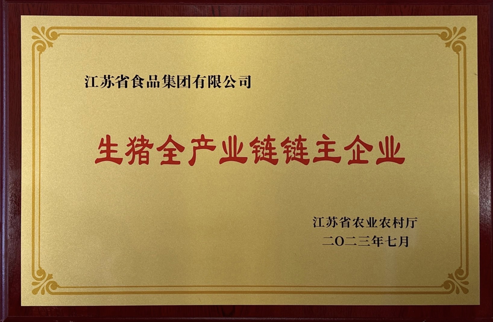 蘇食集團榮獲省級“生豬全產業鏈鏈主企業”稱號